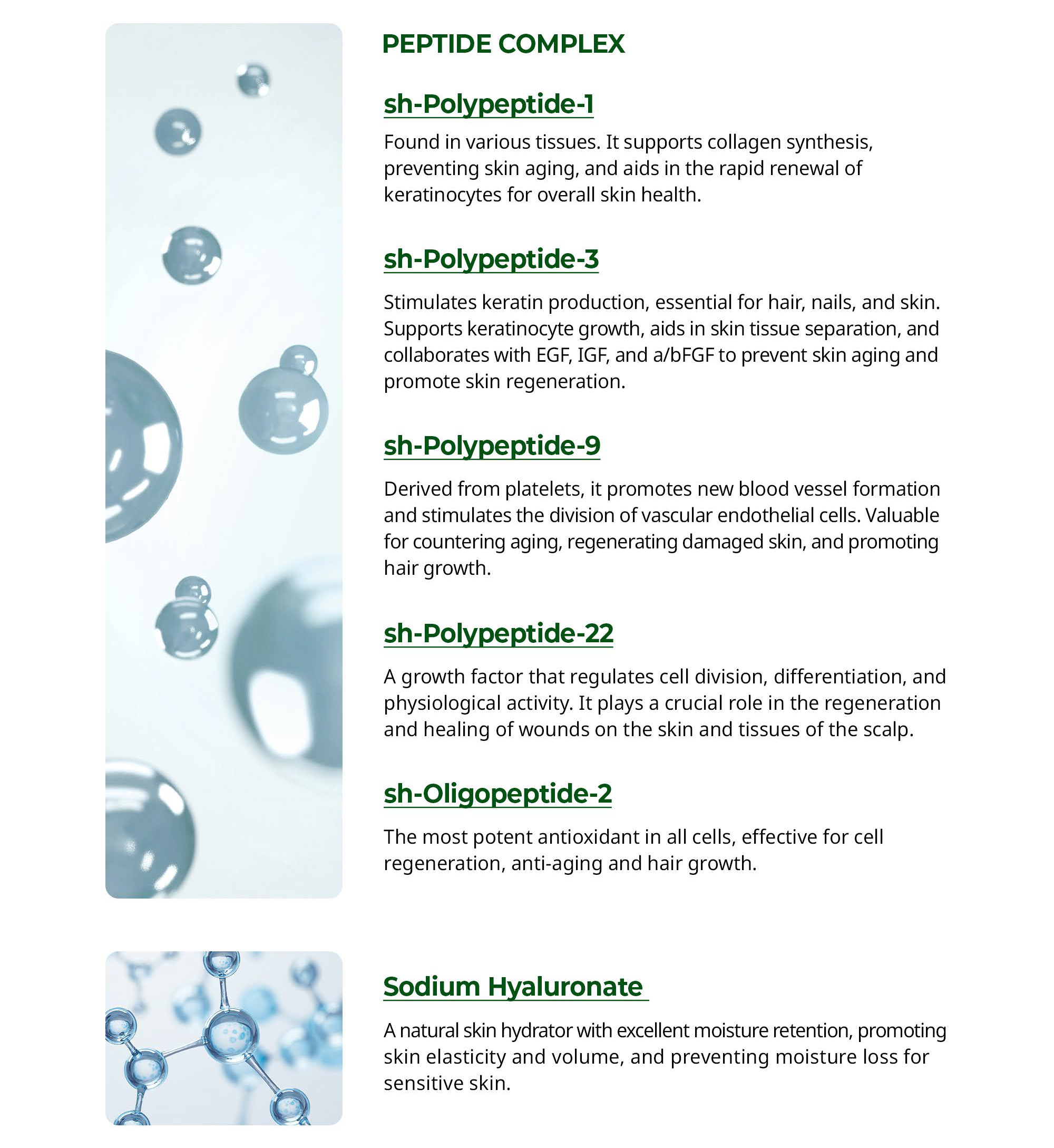 Composition: Copper-1 tripeptide, Biotinoyltripeptide-1, Peptide Complex etc.