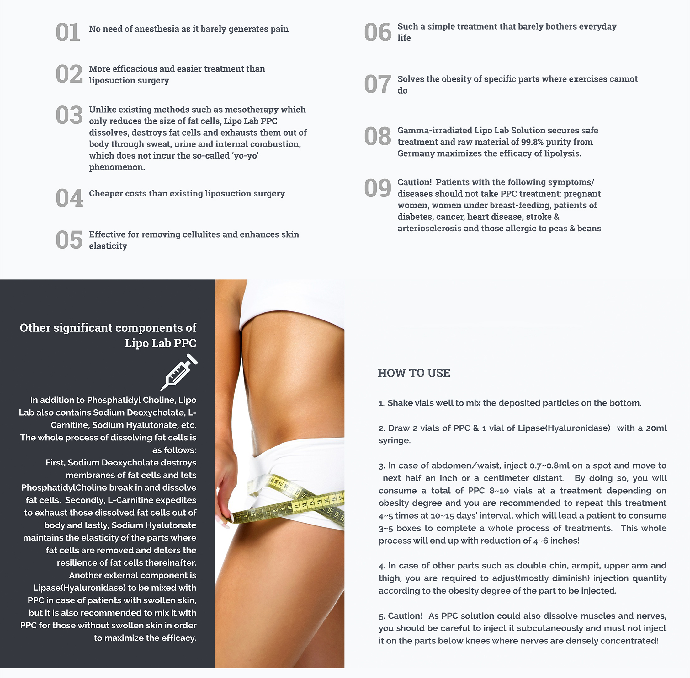 Lipo Lab PPC Solution is a fat-dissolving injection designed to target and reduce stubborn, localized fat deposits in specific body and face areas, such as the chin, abdomen, and thighs.